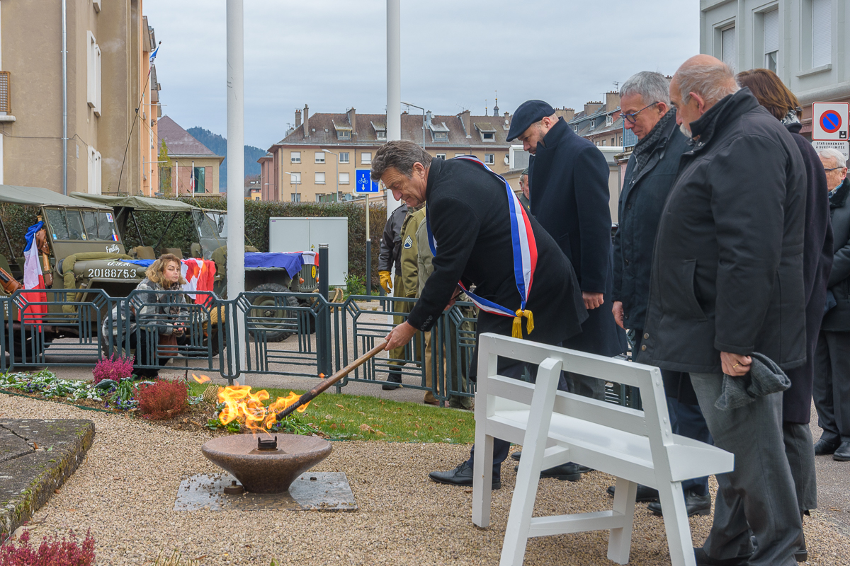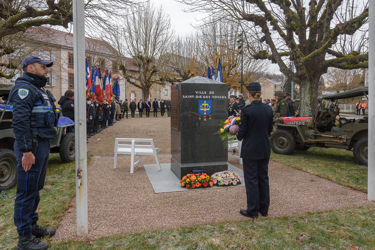 La commémoration déodatienne s’est poursuivie au monument aux morts, avec le ravivage de la flamme, la lecture de l’extrait du 28 février 1949, portant nomination de la Ville de Saint-Dié-des-Vosges dans l’ordre de la Légion d’Honneur – au grade de Chevalier – et de nouveaux dépôts de gerbes. Une minute de silence, La Marseillaise et le traditionnel salut aux portes-drapeaux sont venus conclure la cérémonie.