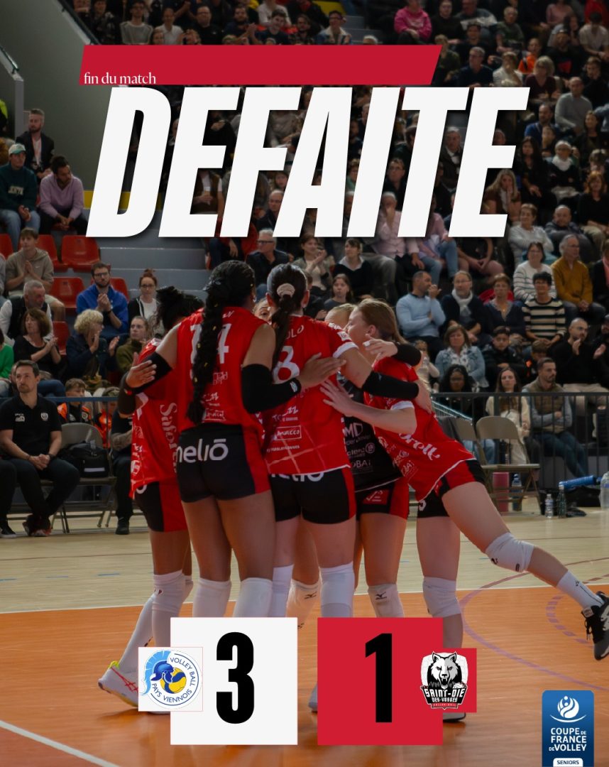 Hier mardi soir, les Louves se déplaçaient en Isère pour affronter le Volley-Ball Pays Viennois en huitième de finale de Coupe de France Pro. Au terme d’un match disputé, les Déodatiennes s’inclinaient 1 set à 3 face à cette formation évoluant en Élite, division où évoluaient les Louves la saison dernière. L’équipe viennoise, solide et appliquée, est parvenue à bousculer les Louves sur l’ensemble de la rencontre.