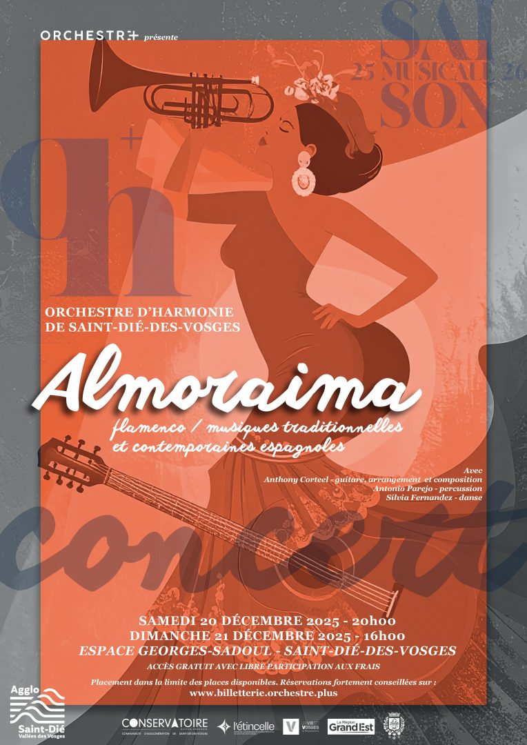 L’Orchestre d’Harmonie de Saint-Dié-des-Vosges présentera prochainement le projet « Almoraima », à travers deux concerts à l’Espace Georges-Sadoul . Un projet consacré au flamenco et aux musiques traditionnelles et contemporaines espagnoles. Ces rendez-vous musicaux mettront en avant la diversité des répertoires et des pratiques musicales venues d’Espagne.