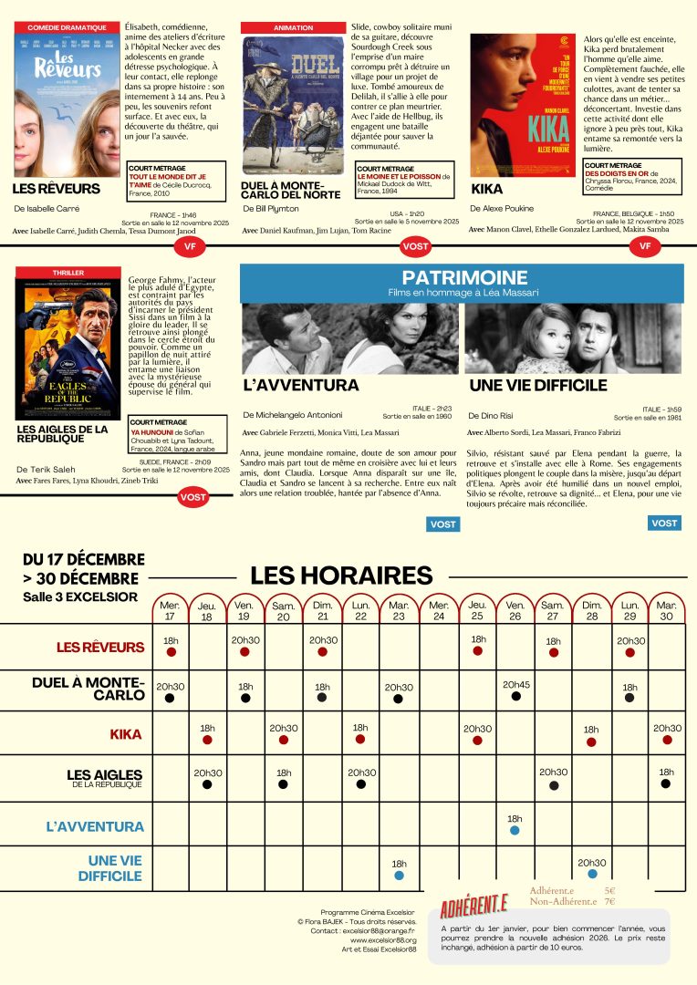 Au cinéma Excelsior du 17 au 30 décembre