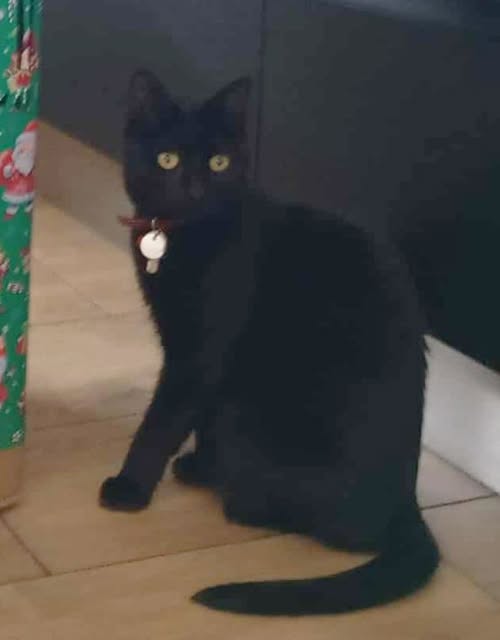 Perdue chatte noire ,le 27 Décembre en fin d’après-midi secteur Marzelay (Saint Dié des Vosges), porte un collier rouge avec une clochette et un porte adresse.