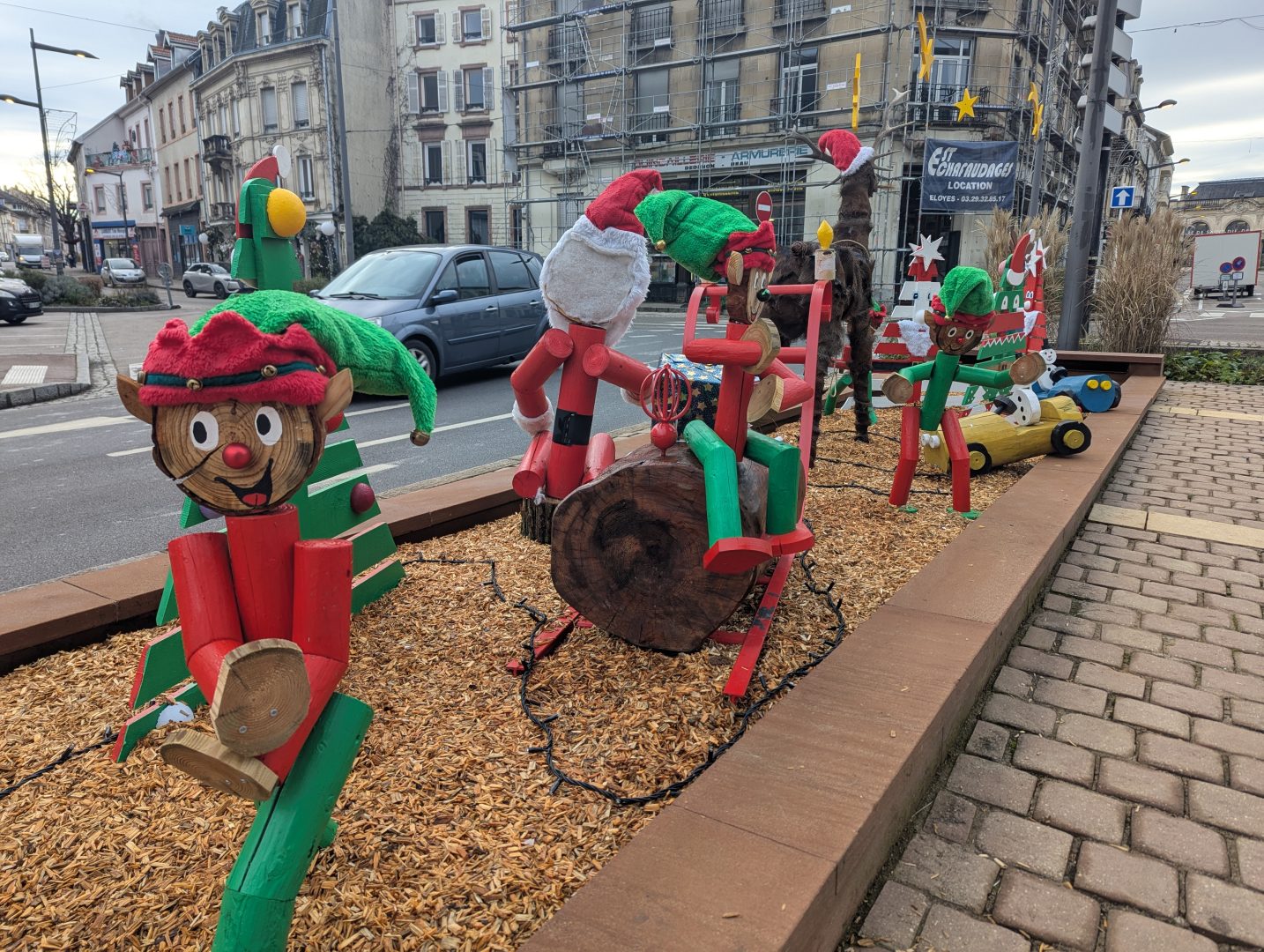 Depuis maintenant quelques jours, l’esprit des fêtes de fin d’année s’est définitivement installé à Saint-Dié-des-Vosges, avec l’installation des chalets du marché artisanal de Noël et de la maison du Père Noël, des illuminations – qui s’allumeront en fin de semaine – et des décorations en bois réalisées en régie, par les services techniques de la Ville. Pères Noël, rennes, champignons, anges, lutins, bonshommes de neige se sont ainsi installés au centre-ville jusqu’au moment de l’Épiphanie. Petit tour d’horizon en images.