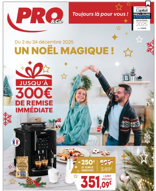 Votre magasin Pro et Cie a préparé une sélections d’idées-cadeaux à des prix « topissime », -jusqu’à 300 € de remises immédiates- sur les plus grandes marques d’électroménager, de TV, Hi-Fi, vidéo et literie.