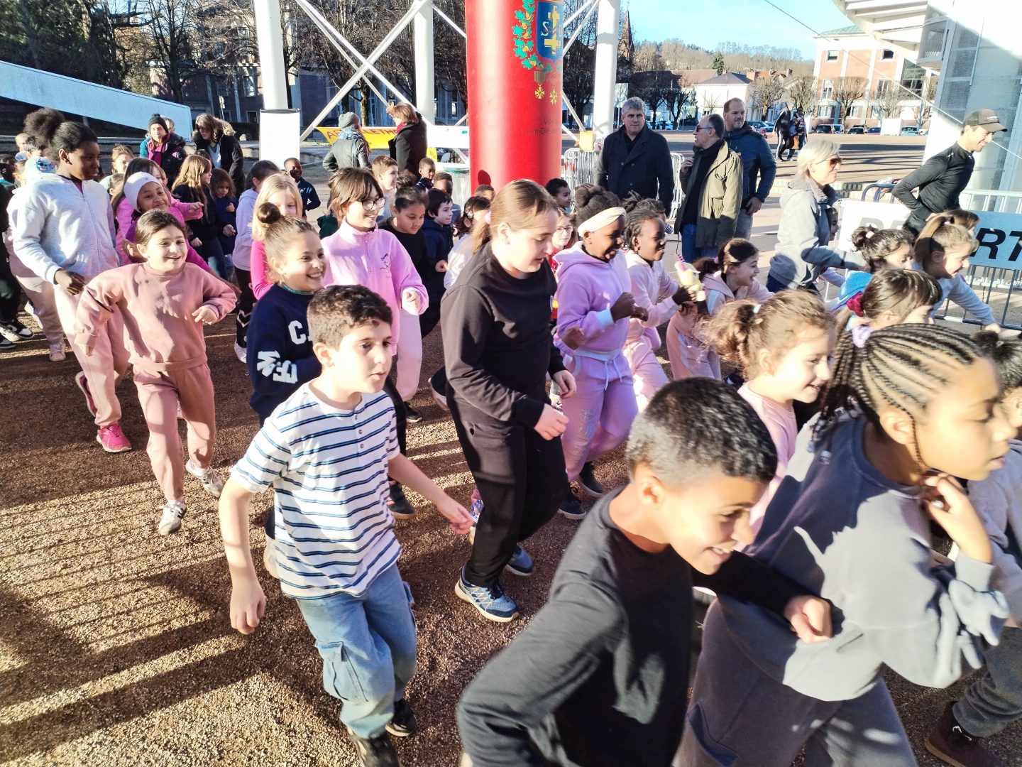 Ces jeudi et vendredi au parc Jean-Mansuy, ce sont 900 jeunes élèves des écoles de la ville, des classes de CP au CM2, qui courent, marchent et avancent pour soutenir l’AFM-Téléthon. Avec comme objectif de parcourir la distance cumulée la plus longue possible. Car chaque kilomètre se transforme en 10 centimes d’euros au profit de la recherche. Et ce grâce au soutien financier de l’Office Municipal des Sports.