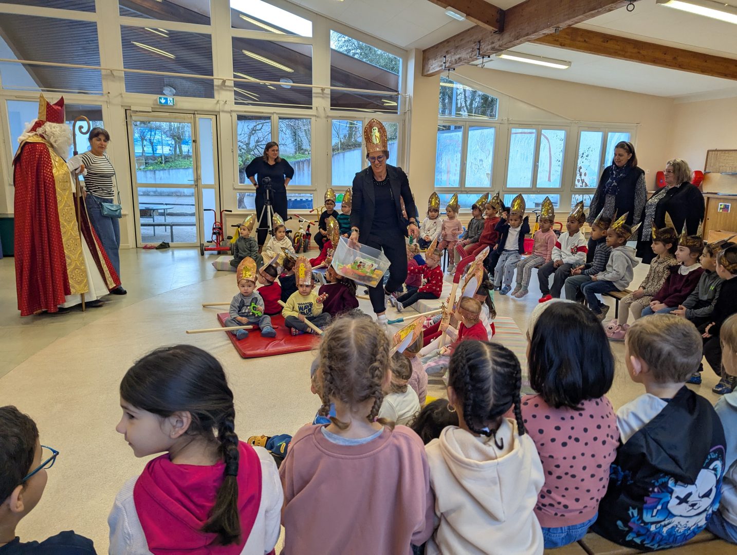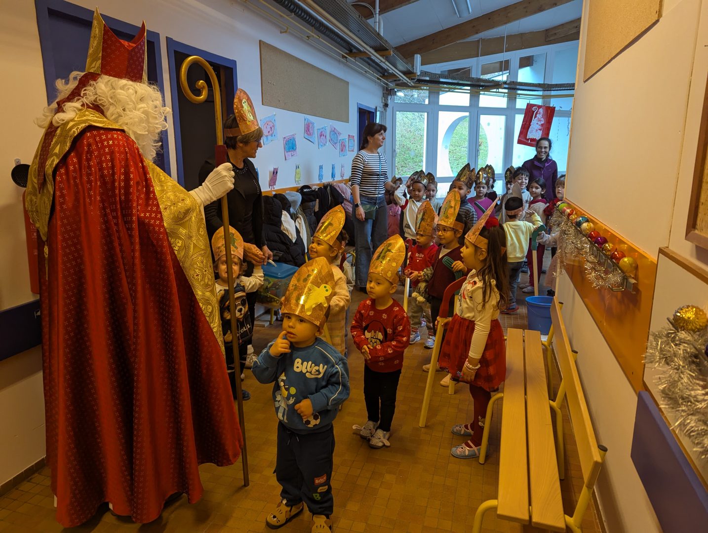 Saint-Nicolas et son grand cortège défileront dans les rues de Saint-Dié-des-Vosges ce samedi 6 décembre, à partir de 17h30 au départ de la rue d’Alsace. Mais avant de sillonner le centre-ville déodatien, l’Évêque de Myre a effectué sa traditionnelle tournée dans les écoles de la ville ces jeudi et vendredi. Un moment toujours très apprécié des enfants… même si le saint patron des Lorrains peut en impressionner certains.