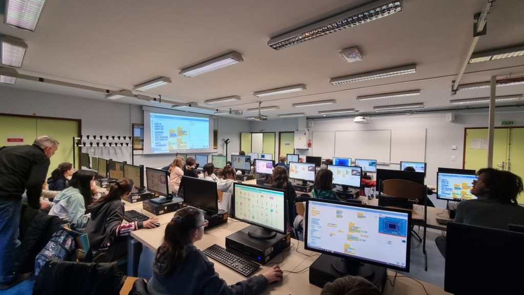 L’Option Humanité Numérique rassemble 77 élèves de la 6e à la 3e, dont près d’un tiers de filles. Cette option permet aux collégiens d’aborder les enjeux du numérique en associant réflexion, pratique et créativité : algorithmique, programmation web et Python, infographie, intelligences artificielles, avec l’expérimentation d’une IA locale intégrée au parcours.