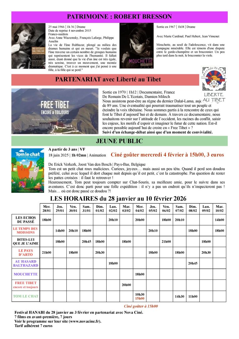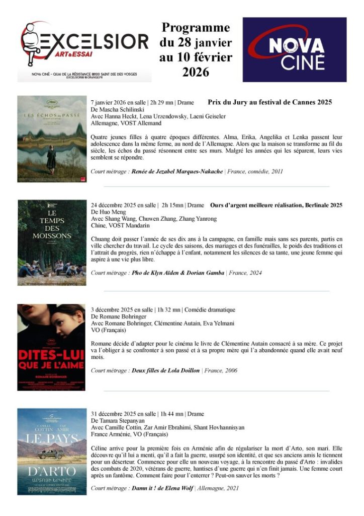 Au cinéma Excelsior du 28 janvier au 10 février