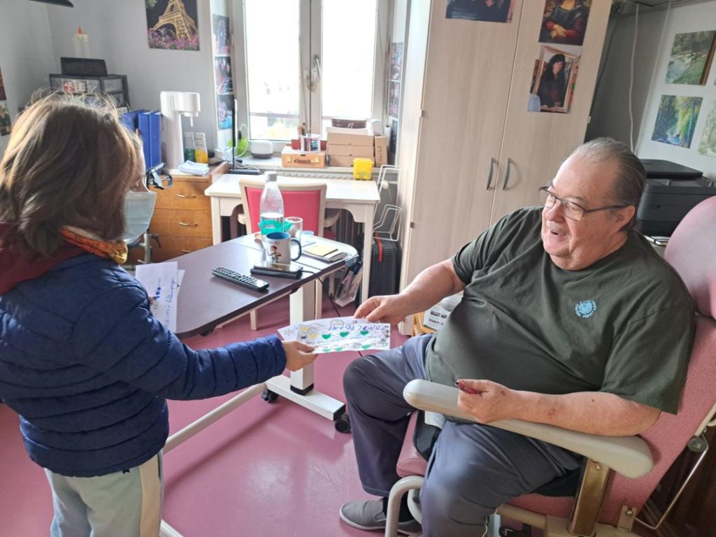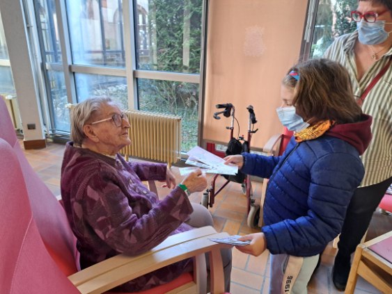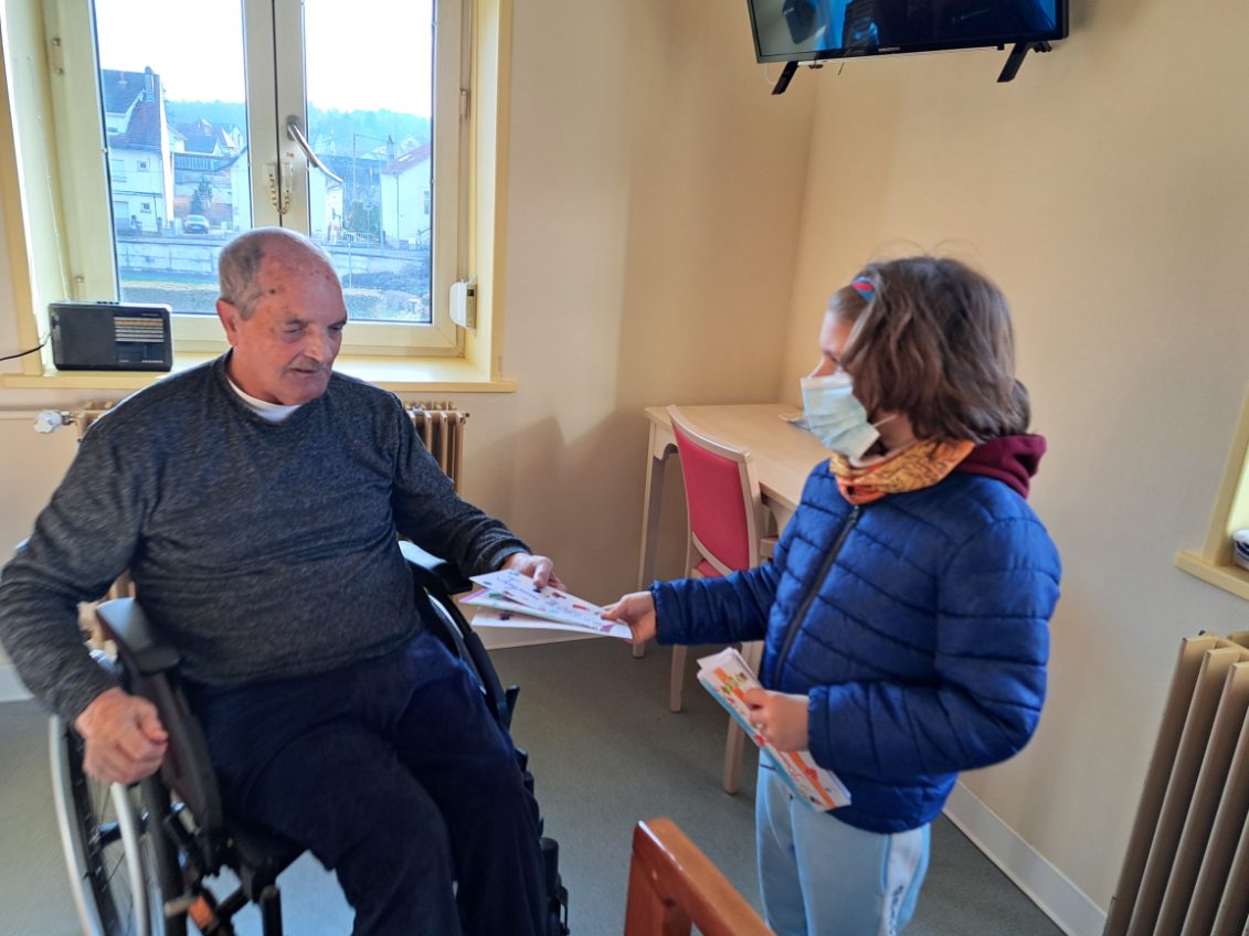 Les cartes de voeux sont distribuées par les enfants eux-mêmes dans l’ensemble des EHPAD – Établissements d’hébergement pour personnes âgées dépendantes – déodatiens, ainsi que dans les Résidences Alsace et du Parc. Hier mercredi, une distribution s’est tenue à l’EHPAD de Foucharupt. Certains résidents se sont montrés très émus en recevant personnellement une carte de vœux 2026 préparée pour eux. À noter que chaque soignant de l’établissement a également reçu une carte, en signe d’attention particulière.