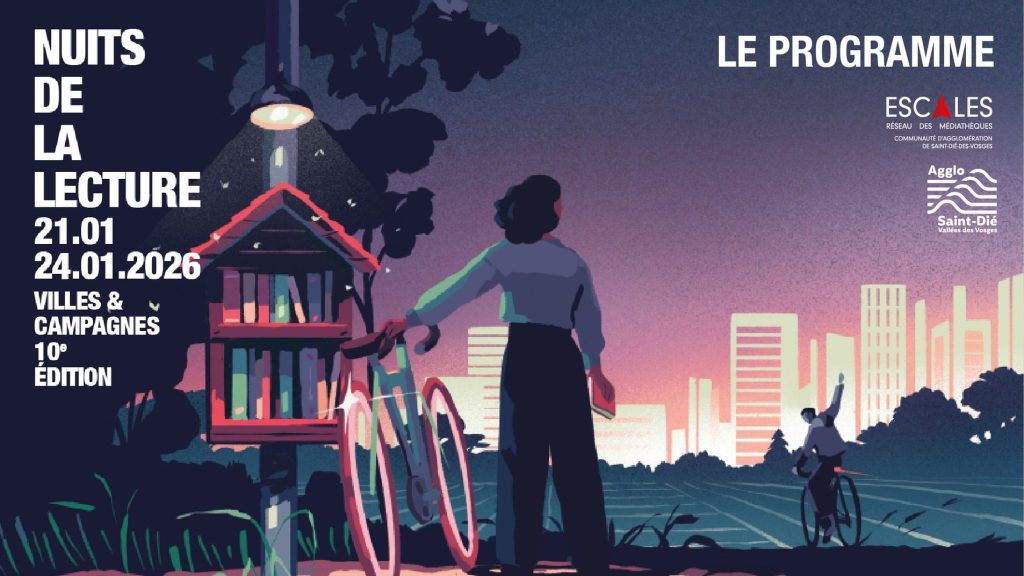 L’année 2026 marque la 10e édition des Nuits de la Lecture, qui ont cette fois-ci pour thème Villes et campagnes. Cet événement national est organisé par le Centre national du Livre, à l’initiative du ministère de la Culture. Du 21 au 24 janvier, le réseau Escales, le réseau d médiathèques de la Déodatie, se feront l’écho de cette 10e édition en proposant expositions, lectures, ateliers, jeux, rencontres et créations artistiques, autour des liens entre territoires urbains et ruraux.
