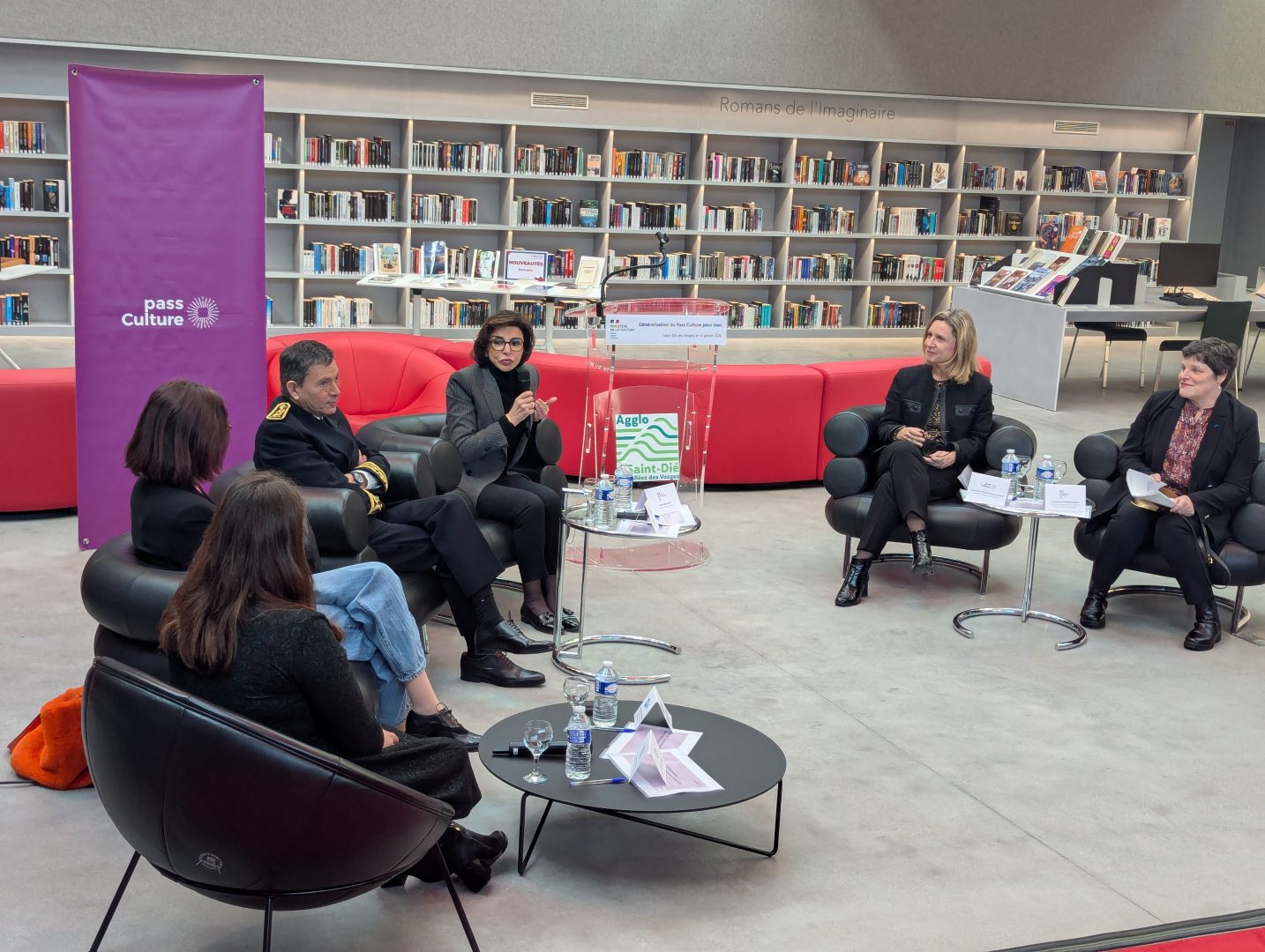 La ministre de la Culture Rachida Dati est de passage à Saint-Dié-des-Vosges en ce jeudi 15 janvier. Un déplacement ministériel consacré à l’accès à la culture pour le plus grand nombre, notamment dans les territoires dits de « ruralité ». Première étape de sa visite, la ministre s’est rendue à La Boussole, pour une table ronde autour du pass Culture pour tous.