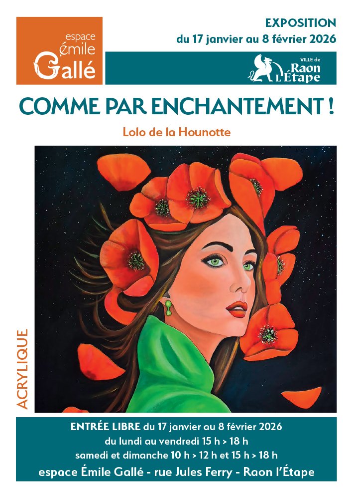 Pour entamer sa nouvelle année artistique, l’espace Emile-Gallé de Raon-l’Étape accueille l’artiste plasticienne raonnaise : Laurence Fèvre, aussi connue sous le nom de « Lolo de la Hounotte ». L’exposition, intitulée « Comme par enchantement », est visible du samedi 17 janvier au dimanche 8 février.