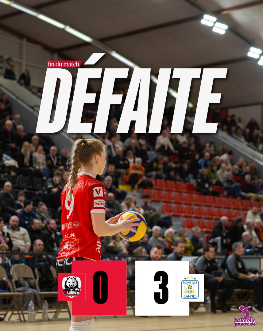 Les Louves recevaient ce samedi soir un grand nom du volley-ball : le RC Cannes. Sur les parquets du Palais Omnisports Joseph-Claudel, les Cannoises, actuellement quatrièmes du championnat, n’ont laissé aucune chance aux Déodatiennes en s’imposant par 3 sets à 0. Et ce malgré un premier set très accroché. Score final : 24-26 ; 20-25 ; 19-25.