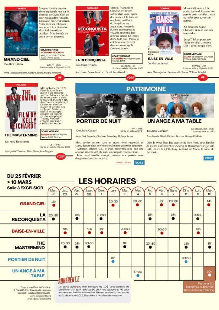 Au cinéma Excelsior du 25 février au 10 mars |