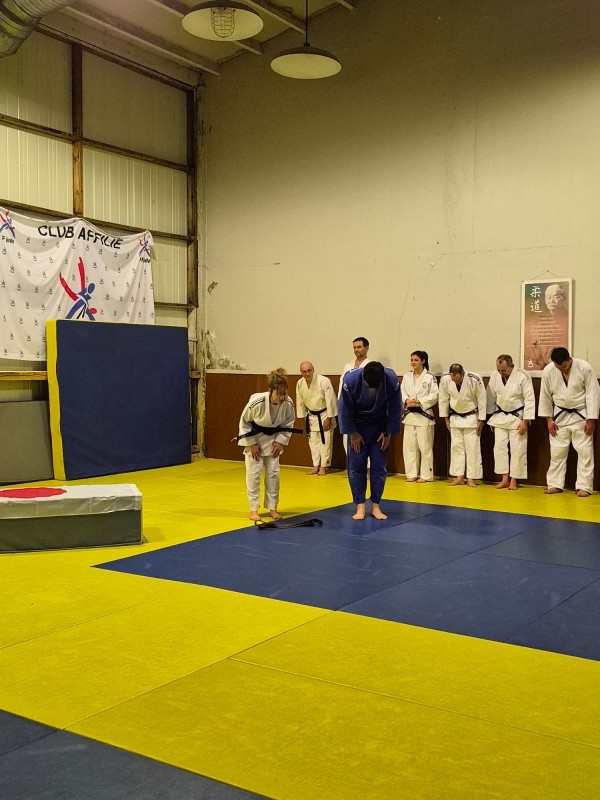 Pour Louis Diem, il a insisté sur la constance. Il a décrit un judoka sur qui le club peut compter, présent, respectueux et toujours à l’écoute, capable de corriger puis de recommencer sans se mettre en avant. Il a aussi souligné son sérieux sur le tatami, son travail mené pendant des années avec Gérard Claudel, directeur technique du club, et sa capacité à accepter la charge d’entraînement sans se plaindre. Pour lui, cette ceinture noire n’a rien d’une surprise et s’inscrit dans la continuité de son engagement.