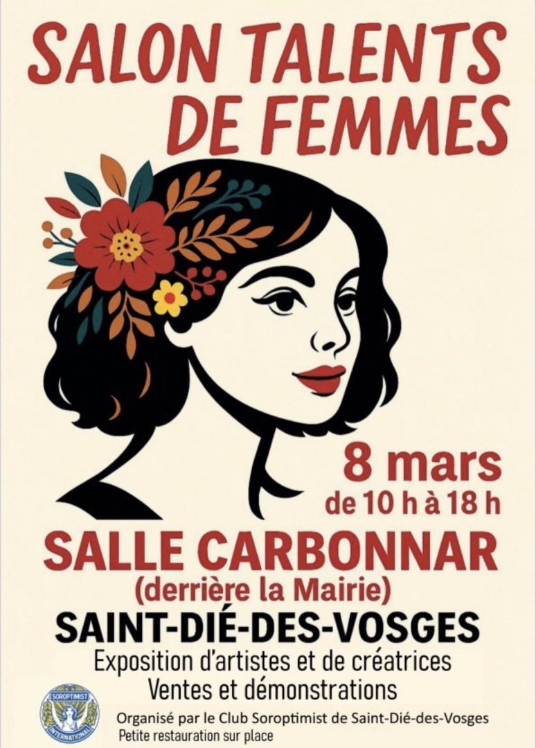 Le Club Soroptimist de Saint-Dié-des-Vosges organise, à l’occasion de la Journée internationale des droits des femmes, la première édition du salon Talents de Femmes, dimanche 8 mars, de 10 h à 18 h, à la salle Carbonnar.