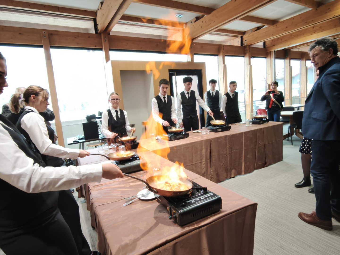 Ainsi, Franck Leroy était en visite du Lycée des Métiers de la Restauration et de l’Hôtellerie de Gérardmer où il a naturellement été accueilli par le proviseur Francis Vignola et le maire de Gérardmer Stessy Speissmann Mozas. Le président de la région Grand Est est notamment passé par les cuisines et la salle du restaurant d’application pour quelques dégustations, mais aussi des travaux pratiques ! Il s’est ensuite rendu à l’Office de Tourisme de Gérardmer où l’attendait la directrice Florence Dupont et une partie de son équipe : un temps d’échanges sur l’activité de l’Office, les projets en cours et à venir, et les enjeux de fréquentation touristique. Franck Leroy a fini sa visite à la station de ski Labellemontagne, en présence de Jean-Yves Remy, Directeur de la station La Bresse-Hohneck, et a même chaussé les skis !