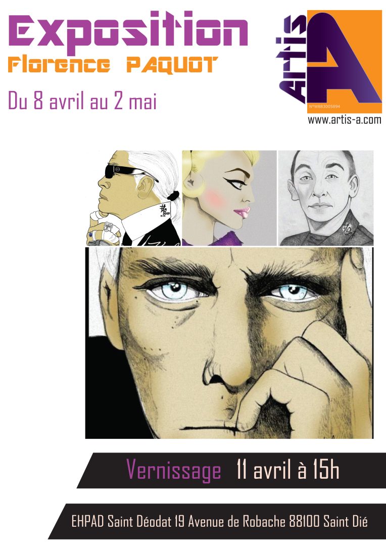 L’exposition individuelle de Florence Paquot sera présentée à l’EHPAD Saint Déodat (19 avenue de Robache, à Saint-Dié-des-Vosges). Le public pourra la découvrir de 14 h à 18 h. Le vernissage se déroulera le 11 avril à 15 h.