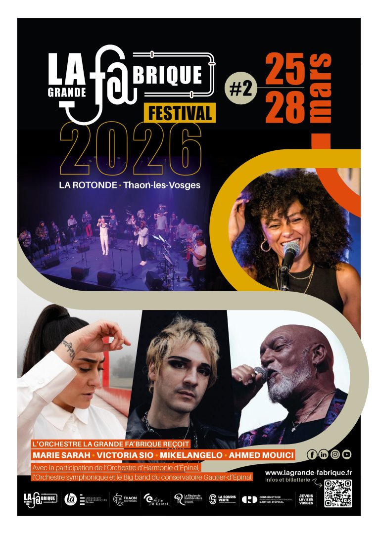 Du 25 au 28 mars 2026, La Rotonde de Thaon-les-Vosges vibrera au rythme d’un événement musical hors norme : la deuxième édition du Festival La Grande Fa’Brique. Quatre jours, dix concerts, des before et after gratuits… et surtout des formations XXL réunissant de 20 à plus de 80 artistes sur scène à chaque soirée. Oui, ici, la musique se vit en grand format !
