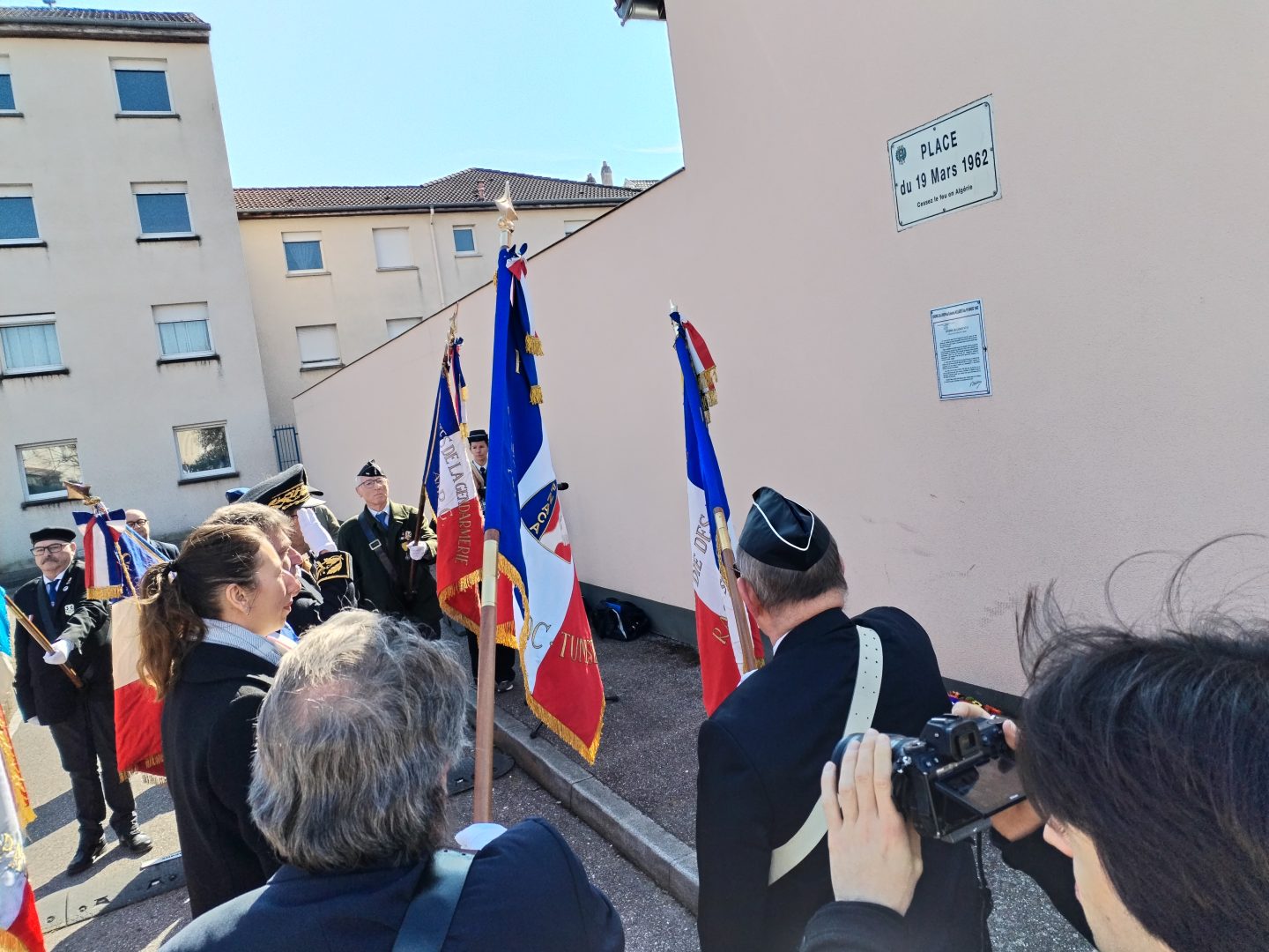 En fin de matinée, le premier temps de l’hommage s’est déroulé place du 19 mars 1962, à l’intersection des rues de la Prairie et du Battant. Le cortège a ensuite rejoint le monument aux Morts pour la suite de la commémoration.