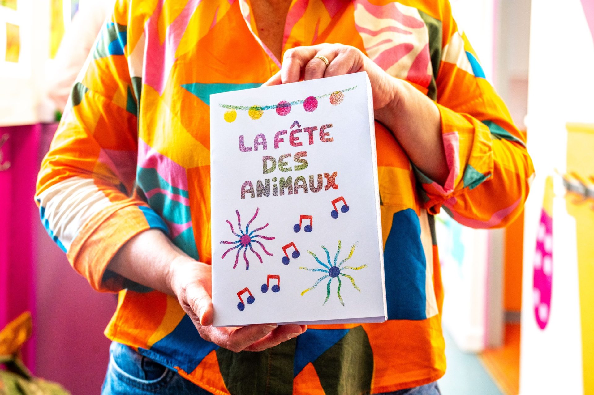 L’œuvre fait apparaître une fleur et plusieurs animaux, parmi lesquels des grenouilles, des coccinelles et des vers. Elle s’appuie sur deux histoires imaginées par les élèves autour des thèmes de la fête et des vacances, qui ont servi de fil conducteur à la création. Un livre reprenant ces deux récits a été remis à chaque enfant. Un abécédaire complète également l’ensemble.
