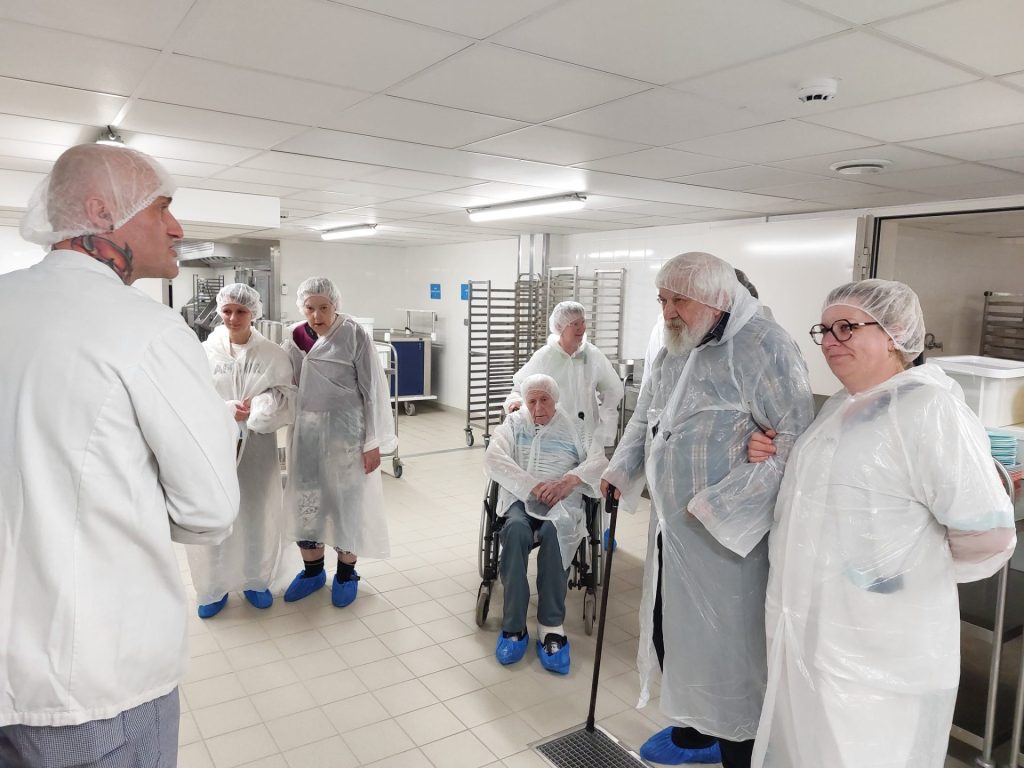 Une cinquantaine de résidents se sont inscrits aux sept visites organisées au cours du mois d’avril. La première s’est déroulée mercredi 8 avril, à 14 h. Équipés du kit visiteur, les cinq premiers participants ont découvert le fonctionnement des cuisines, guidés par les explications de Gérard Thomas, chef cuisinier adjoint.
