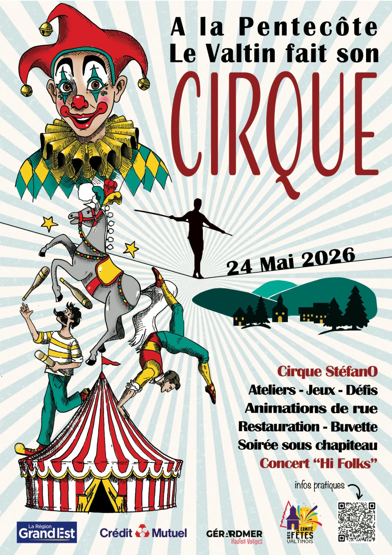 La nouvelle édition de la fête de la Pentecôte au Valtin se déroulera Dimanche 24 Mai 2026. Cette année, le thème est tourné vers les Arts du Cirque et dans ce cadre, le Cirque Stefano plantera son chapiteau au cœur du village et réalisera 2 représentations dans l’après-midi.