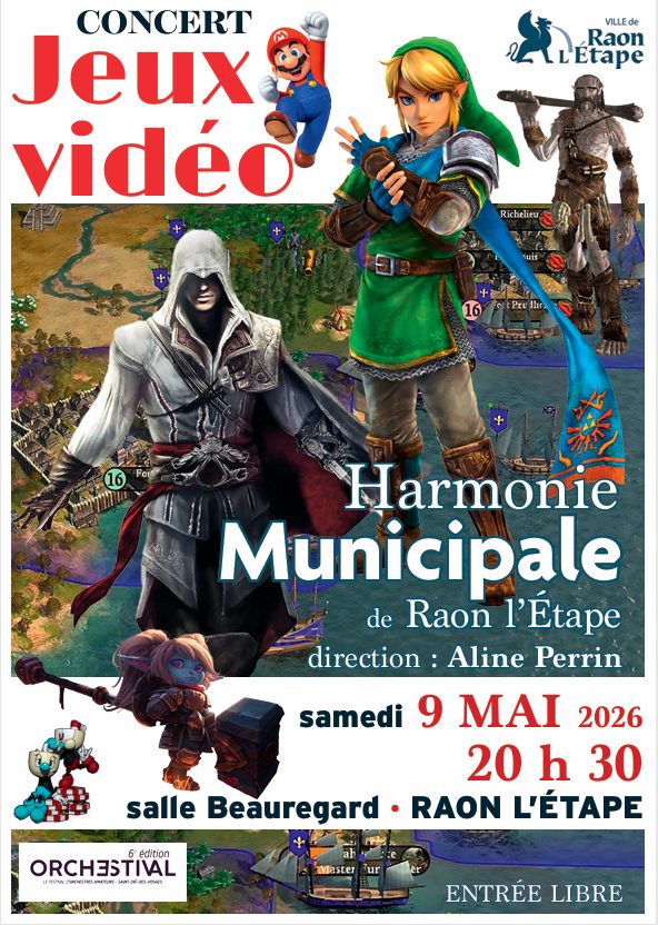 L’Harmonie Municipale de Raon-l’Étape retrouvera la salle Beauregard samedi 9 mai, à 20 h 30, pour son traditionnel concert de printemps. Sous la direction de Aline Perrin, cette édition sera consacrée aux musiques de jeux vidéo. L’entrée sera libre.