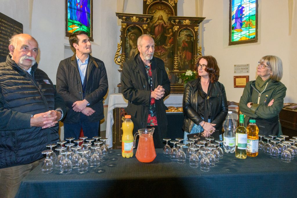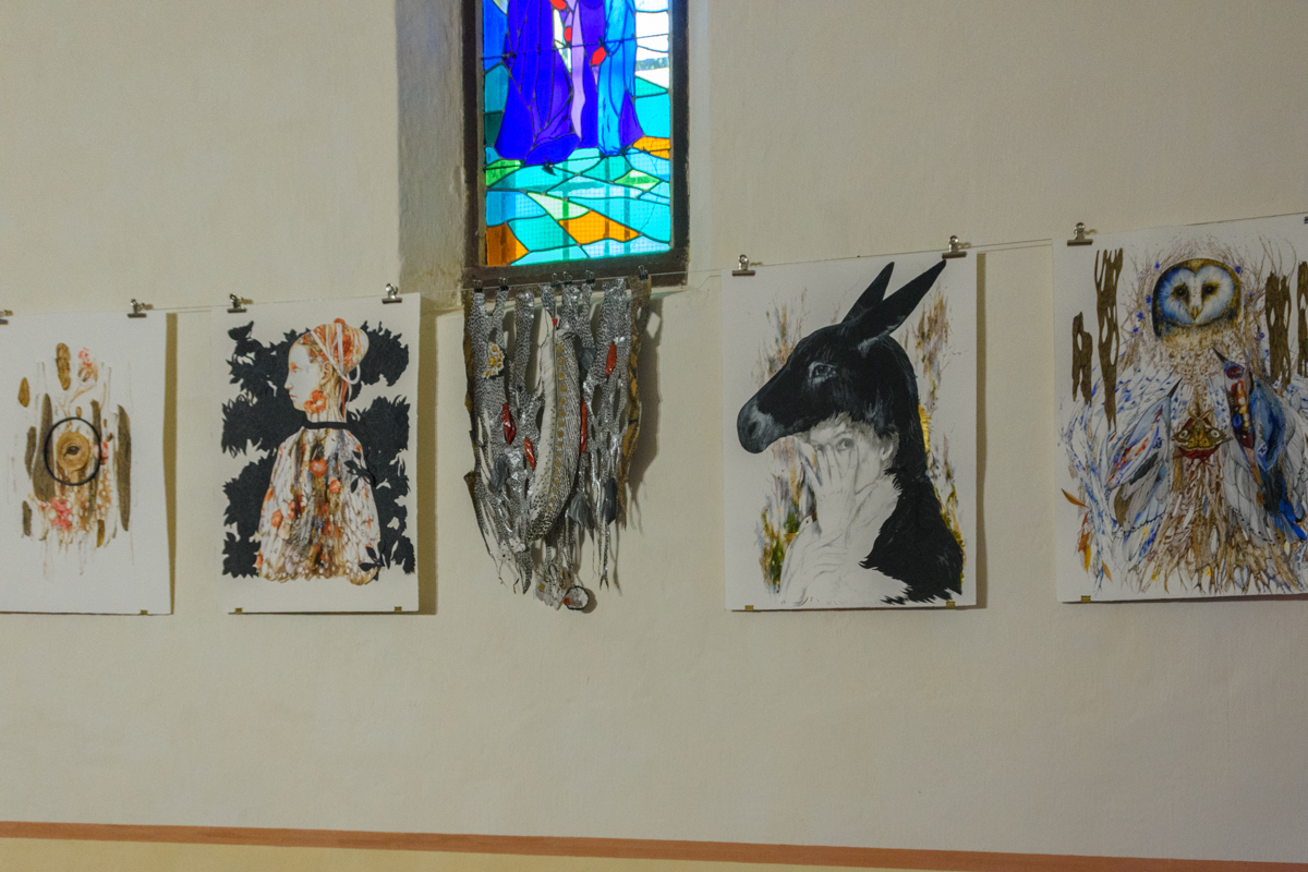 L’artiste Emmanuelle Pereira (deuxième en partant de la droite) expose jusqu’au 4 octobre en la chapelle Saint-Roch. (Photographies Marc Fourniquet)